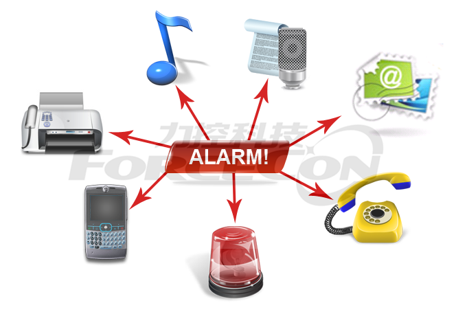 支持全方位的報警通知,包括聲音報警、語音報警、E-mail 或短信報警、逐行打印報警、Modem語音撥號報警等。